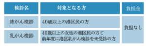 当クリニックは港区がん検診(肺がん検診、乳がん検診)の実施医療機関です。